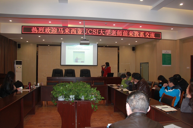 在欢迎座谈会上,我院副院长钟志万代表全院师生向UCSI大学访问团的到来表示热烈欢迎。他讲道:我院围绕高端技术型人才培养目标,建设了一批实验实训基地,并加强校企深度合作,以强化学生实践能力;学院还与韩国东国大学、加拿大北大西洋学院等国外院校开展了合作交流,为师生留学和进修创造条件。我院与UCSI大学去年12月签订合作备忘录以来,已有两名英语教师赴思特雅大学访问。本次UCSI大学老师来我院访学,是 我院师生学习提高的好机会,希望以此为契机,推动两校师生更好地理解双方的教育理念,促进更深层次的合作交流和进步发展。